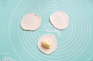 На каждый кружок выложите картофельную начинку.