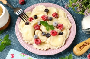 Вареники с творогом "Классические" готовы. Подавайте их с мёдом, сметаной, кусочком сливочного масла и по желанию с любыми ягодами или фруктами.