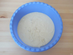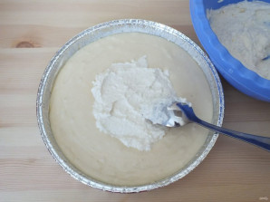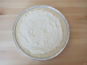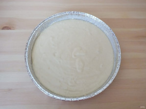Возьмите форму с бортиками, в диаметре 20-22 см. Если необходимо смажьте маслом. Вылейте в нее тесто.