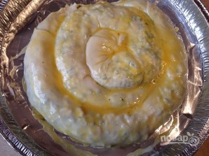 Смазываем желтком, смешанным с ложкой воды, и отправляем в разогретую до 200 градусов духовку на 30-35 минут.