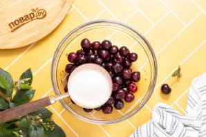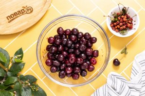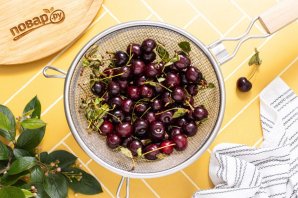 Вишню помойте, откиньте на сито и дайте стечь лишней жидкости.