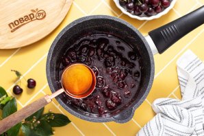 В третий раз перед тем, как довести варенье до кипения, добавьте ром в кастрюлю с вишней.