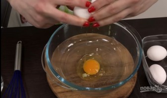 1. В миску вбиваете по одному куриные яйца, затем размешиваете все венчиком (не миксером).