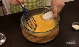 2. Добавляете 1 столовую ложку сахара, щепотку соли и ваниль, перемешиваете.