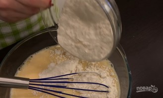 4. Муку заранее просейте и введите к жидким составляющим, перемешайте, чтобы не оставалось комочков.
