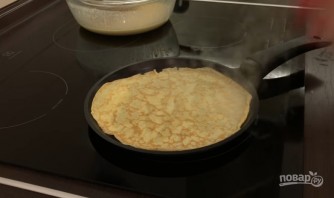 6. Сковороду хорошо разогреваете с растительным маслом, выливаете половником тесто, обжариваете примерно по 1 минуте с каждой стороны, после чего выкладываете блины на тарелку.