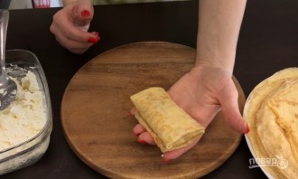 8. Остывшие налистники начиняете творожной начинкой и сворачиваете конвертиком.