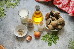 Подготовьте все необходимые ингредиенты для приготовления вонголе в сливочном соусе.