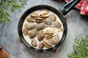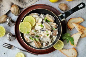 Рецепт не отнимет много времени. Готовые вонголе нужно подавать сразу, иначе они потеряют свою нежность и вкус. Сливки ниже чем 20% не подойдут, так как соус останется очень жидким. Перед подачей ракушки посыпьте рубленой петрушкой и подавайте с обжаренными гренками и дольками лимона или лайма Подавайте горячим.