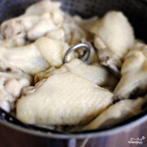 Тем временем, крылышки будут готовы. Нам нужны полностью готовые крылышки, которым мы придадим хрустящую корочку.