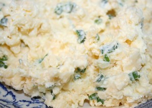 Перемешиваем до однородной массы масло, сыр, зелень и чеснок.