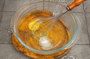 Яйца вбейте в миску и смешайте с медом и ванилином.