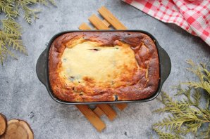 Форму поставьте в горячую духовку и запекайте при температуре 180 градусов в течение 30-35 минут до готовности. Спустя время форму с запеканкой достаньте и остудите.