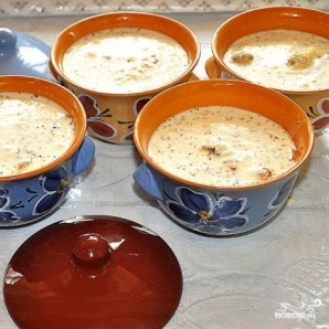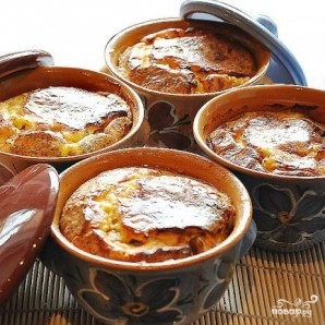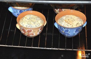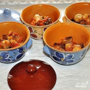 Выкладываем порциями нашу пассеровку в порционные горшочки.