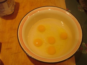 Начинаем делать тесто. В пол литра воды разбейте яйца, добавьте ложку растительного масла, чуть-чуть посолите.
