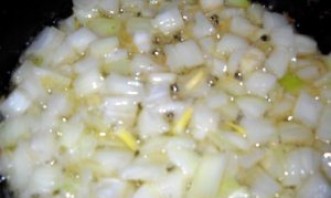 Дрібно наріжте цибулю та смажте 5 хвилин до м'якшості.