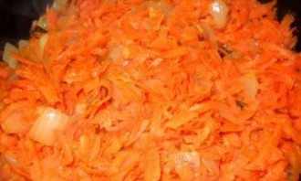 Додайте терту моркву, готуйте ще кілька хвилин, постійно помішуючи.