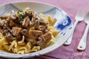 Страва готується без зайвих складнощів. Ніжне м'ясо, ароматні грибочки та вершковий соус — ось основа цієї страви. Таке м'ясо часто подають із гарніром із картопляного пюре, гречки або рису, макаронами. Є різні варіації страви із використанням свинини, курки, індички, але насамперед варто спробувати класичне виконання. Готову страву можна подавати до столу.