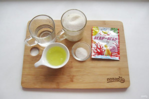 Замочіть агар-агар. Викладіть його в мисочку і залейте 20 мл холодної води.