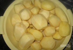 Картоплю промиваємо і очищаємо. Варимо до готовності в окропі з сіллю.