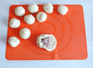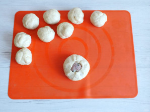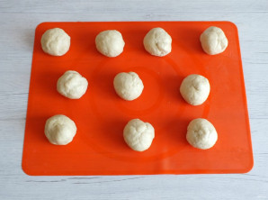 По истечении времени достаньте тесто из холодильника. Разделите на 10 частей. Округлите.