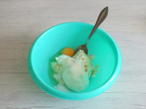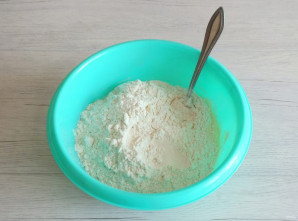 Добавьте в полученную массу соду и перемешайте. Оставьте на 5 минут.