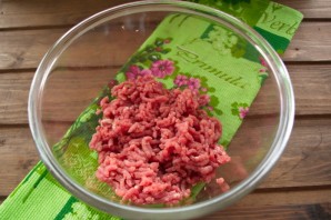 Біфштекс буває двох видів. Цей біфштекс готується з фаршу. Його можна зробити, перекрутивши м'ясо на м'ясорубці або нарізавши дуже дрібно ножем. Отже, фарш викладаємо в миску.