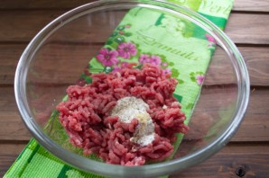 Додаємо сіль, перець і збиту вершкову оцет до фаршу. Змішуємо руками.
