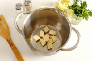 Масло нарежьте кубиками.