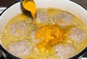 Всипаємо столову ложку куркуми, солимо і перчимо, готуємо 7-10 хвилин. Потім знімаємо з вогню і даємо настоятися.