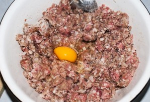 М'якоть яловичини разом із цибулиною пропускаємо через м'ясорубку. Додаємо яйце, промитий рис, солимо, перчимо та ретельно вимішуємо фарш.
