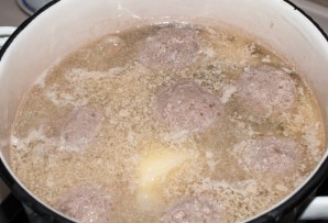 Коли картопля буде майже готова (варити її потрібно приблизно 20 хвилин), додаємо до неї тефтельки в каструлю і ще готуємо 20 хвилин.