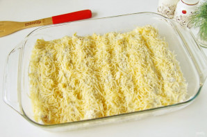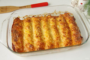 Змастіть верх вершковим маслом і посипте тертим сиром. Запікайте в духовці при температурі 180 градусів близько 30 хвилин.