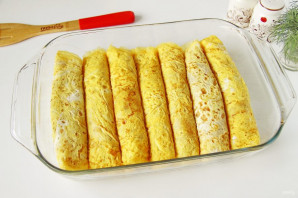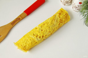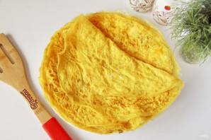 Змастіть сковороду маслом, добре її прогрійте і вилийте збиті яйця. Посмажте утворений омлет з обох боків. Занадто сильно підсмажувати не потрібно, достатньо, щоб яйце зіщепилося. Таким чином підготуйте всі бризолі.