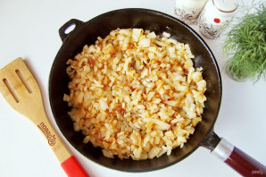 Цибулю наріжте кубиками і обсмажте на вершковому маслі.