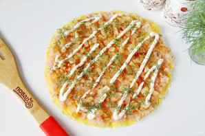 Змастіть начинку майонезом і посипте свіжою зеленню.