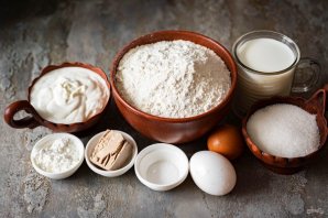 Подготовьте все ингредиенты. Молоко немного подогрейте в сотейнике, оно должно быть примерно 35-37 градусов.