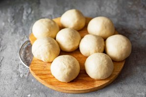 Поделите всю массу теста на равные части весом примерно по 80 грамм. Подкатайте все части теста, чтобы получились шарики одинакового размера.
