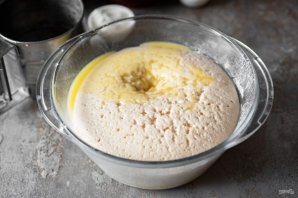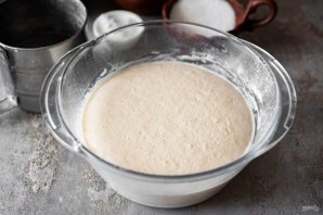 Через полчаса опара заметно увеличилась в объеме, приобрела крупнопористую структуру.