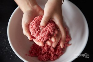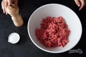 Основой вкусного гамбургера является вкусная котлета. Готовим ее из говяжьего фарша, добавив в него соль и перец. По желанию, в фарш можно добавить измельченный лук и чеснок, но это не обязательно.