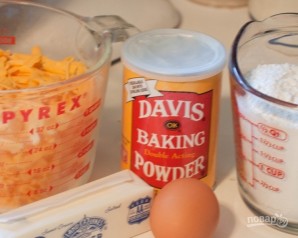 1. Смешайте муку с разрыхлителем и солью. В другой емкости смешайте сливочное масло комнатной температуры и тертый сыр. Соедините сухие ингредиенты с масляно-сырной смесью, добавьте по 1 ложке холодной воды и замесите тесто.