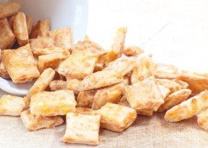 Вкусная выпечка для всей семьи. Можете приготовить целую гору вот таких крекеров, ведь срок их хранения очень большой. Используйте один вид сыра или несколько. Отлично подойдет мраморный сыр, он придаст красивый цвет и текстуру. Крекеры ешьте с чаем или подавайте с соусом, например, с чесночным Можно подавать с чаем или кофе.