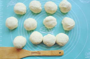 Подошедшее тесто разделите на шарики весом 70-75 грамм.