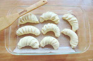 Смажьте рогалики яйцом и поставьте в заранее разогретую до 175-180 градусов духовку.