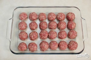 3. Підготуйте жаростійку форму. Викладайте в неї їжачків, сформованих із фаршу вологими руками. Зручно також використовувати ложку для морозива, якщо вона у вас є.