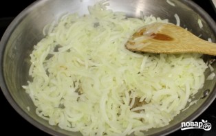 4. Відкладіть їжачків у сторону та ввімкніть духовку на 200 градусів. Поки вона нагрівається, можна зайнятися соусом. На сковороді розтопіть трохи вершкового масла та обсмажте до прозорості нарізаний цибулю.