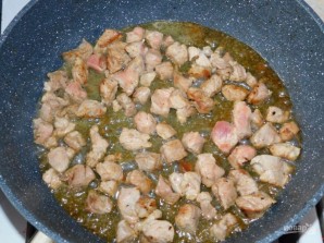 Нарежьте мясо на кусочки и обжарьте в течение 10 минут.