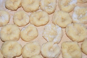 Розкладіть галушки на поверхні, у кожній зробіть невелике заглиблення пальцем. Тепер галушки можна додавати до супу. Деяким подобається трохи обсмажити їх на рослинній олії, а потім уже класти в суп.