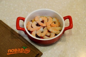 Рецепт не забере багато часу. Креветки цілком можна замінити морським коктейлем або іншими морепродуктами. В іншому ж суворо дотримуйтесь рецептури. Подавайте гарячим.