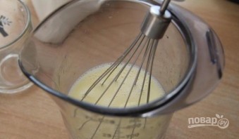 Яйцо перемешайте венчиком с водой и солью.